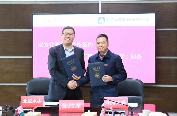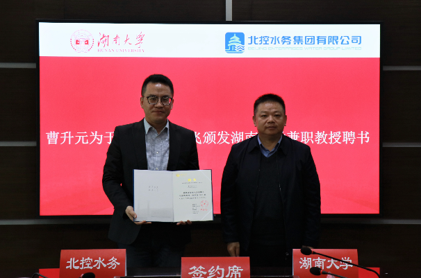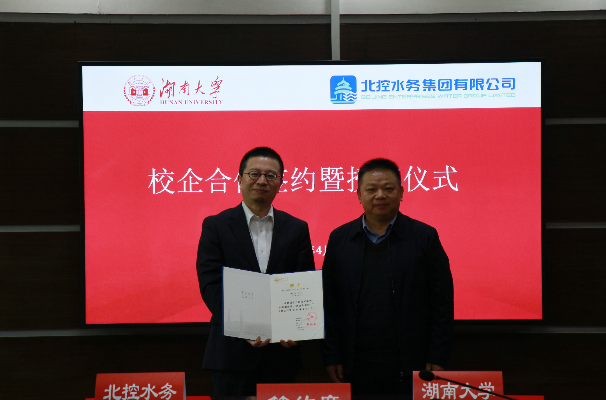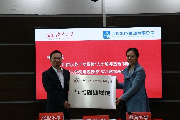 | 2021年4月9日,环境学院与北控水务集团在校办335会议室举行校企合作签约暨授牌仪式。北控水务集团高级副总裁、北控水务学院院长于立国一行,湖南大学纪委书记曹升元教授,环境科学与工程学院院长汤琳教授、湖南大学发展联络处副处长向杰、环境科学与工程学院党委副书记刘婵、系主任董浩然教授、黄彬彬副教授、实验中心主任晏铭副教授,以及青年教师鲁玥副教授、谭小飞副教授、程敏助理教授、周成赟助理教授、秦蕾助理教授、王佳佳助理教授出席此次活动。仪式由汤琳院长主持。 曹升元书记首先代表湖南大学致辞。他表示,湖南大学是历史悠久的千年学府,也是教育部直属全国重点大学、国家“世界一流大学”建设高校,他表示,希望通过北控水务集团与湖南大学校企双方的密切合作,实现资源共享互通,共同打造水务环保人才的培养基地。 于立国高级副总裁立足行业发展趋势,简要介绍了北控水务集团在业务布局、技术研发、体制机制方面的优势。他表示,本次校企合作签约,是北控水务集团与湖南大学进一步深度合作的起点,也希望双方本着“资源共享、优势互补、合作共赢、协同发展”的理念,通过多方位、深层次、综合性的合作模式,打造人才培养平台新高地,构造产教融合新格局。 汤琳院长介绍了湖南大学环境科学与工程学院的整体情况,回顾了学院在人才培养、科学研究和社会服务方面取得的成果。她表示,此次与北控水务集团的合作,可以充分发挥校企双方的资源优势,一方面为企业输送高素质人才,一方面也为课程多样性、学生实习就业搭建了更广阔的平台。 湖南大学发展联络处副处长、教育基金会副秘书长向杰与集团人力资源中心副总经理冀广鹏代表双方签署校企合作奖学金捐赠协议,曹升元书记代表学校向于立国、薛晓飞颁发《兼职教授聘书》。于立国高级副总裁与汤琳院长双方互授“人才培养基地”和“就业实习基地”匾牌、“高校科技成果转化中心”和“科技成果转化服务中心”匾牌。 此次活动的召开,标志着双方的合作进入了一个崭新的阶段。为促进教育链、人才链、产业链的有机结合,实现专业与产业、企业对接,双方将在人才培养、实习就业、科研合作、成果转化等领域开展更多内容和层次的交流与探索。