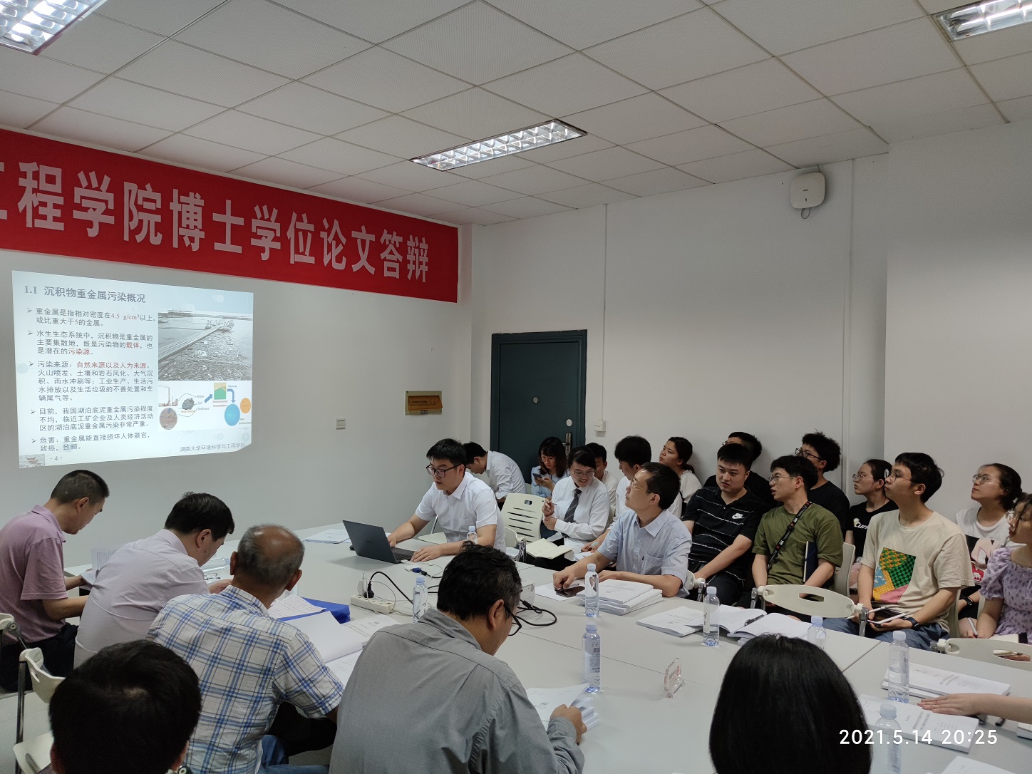| 博士生邓锐(湖南大学环境科学与工程学院)于2021年5月14日晚在环境馆一楼会议室顺利通过了博士学位论文答辩。 答辩委员会主席: 牛承岗 教授/博导 (湖南大学环境科学与工程学院) 答辩委员会委员: 谢青季 教授、博导(湖南师范大学化学化工学院) 彭 兵 教授、博导(中南大学冶金与环境学院) 袁兴中 教授、博导(湖南大学环境科学与工程学院) 杨春平 教授、博导(湖南大学环境科学与工程学院) 黄瑾辉 教授、博导(湖南大学环境科学与工程学院) 赖 萃 副教授、博导(湖南大学环境科学与工程学院) 答辩秘书:李欣 副教授/博导 (湖南大学环境科学与工程学院) 邓锐博士生论文题目:生态型纳米氯磷灰石对Pb/Cd污染沉积物的修复及其微环境响应机制研究 导师:黄丹莲 教授/博导、曾光明 教授/博导 河湖沉积物环境中的重金属污染愈发严重,尤其是重金属铅/镉。磷灰石材料,由于其丰富的来源、低廉的价格,以及对环境中重金属卓越的固定化能力,已被大量用于环境中重金属的修复。传统的磷灰石分散性差,且一般呈较大的颗粒结构,很难在沉积物中迁移分散并与重金属结合,当释放到环境中的磷的利用率较低时,很可能造成二次污染的风险。因此,本文旨在寻找对环境无害的生态环保型改性剂对传统的氯磷灰石进行优化制备和改性,以提高氯磷灰石的分散性能、迁移性能、磷的有效利用率和重金属的稳定效率为目的,制备出高性能的生态型纳米氯磷灰石材料,用于模拟沉积物的重金属铅/镉的原位稳定化修复,并深入探究其微环境响应机制以及对沉积物理化性质和酶活性的影响,为未来生态型纳米氯磷灰石应用于实际沉积物重金属污染原位修复奠定理论依据和研究基础。 邓锐博士生理论基础和专业知识扎实,科研创新能力强。攻读博士学位期间以第一作者(或导师第一、本人第二作者)在Chemical Engineering Journal (SCI 2019 IF=10.652)、Journal of Hazardous Materials (SCI 2019 IF = 9.038)、Bioresource Technology (SCI 2019 IF=7.539)、Journal of Cleaner Production(SCI 2020 IF=7.246 )、Chemosphere (SCI 2019 IF=5.778)等国际知名学术期刊上发表SCI论文8篇,中科院1区7篇,2区1篇,其中ESI高被引论文1篇,参与国家自然科学基金3项。 该博士学位论文立足于当下环境的实际污染问题,以氯磷灰石为切入点系统地研究了其稳定沉积物重金属Pb/Cd的机理,创新性强,逻辑思维清晰缜密,研究结果具有较强的理论价值和实践指导意义。该论文工作量大、结构严谨、内容详实、数据可靠、图表清晰、引证规范、结论正确、成果突出,体现出了作者较好的专业理论基础和较强的科研工作能力,该论文是一篇优秀的博士学位论文。 在此,对邓锐博士生通过博士学位论文答辩表示热烈祝贺!
