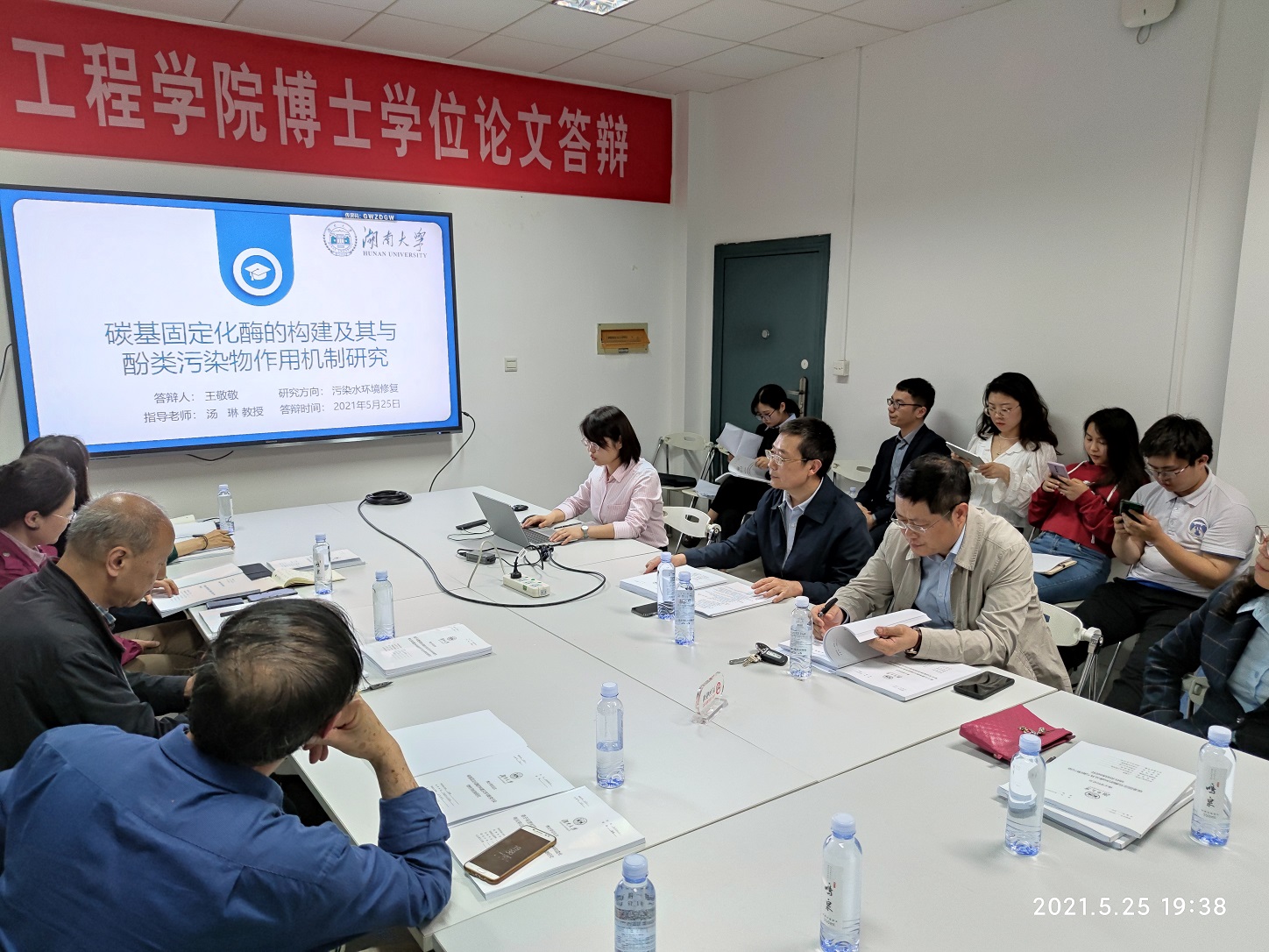 | 博士生王敬敬(湖南大学环境科学与工程学院)于2021年5月25日晚在环境馆一楼会议室顺利通过了博士学位论文答辩。 答辩委员会主席: 牛承岗 教授/博导 (湖南大学环境科学与工程学院) 答辩委员会委员: 尹笃林 教授、博导(湖南师范大学化学化工学院) 彭 兵 教授、博导(中南大学冶金与环境学院) 龚继来 教授、博导(湖南大学环境科学与工程学院) 庞 娅 副教授 (长沙学院) 答辩秘书:李欣 副教授/博导 (湖南大学环境科学与工程学院) 王敬敬博士生论文题目:碳基固定化酶的构建及其与酚类污染物作用机制研究 导师:汤琳 教授/博导 虽然我国工业源挥发酚的排放总量在逐年下降,但内陆水域挥发酚污染依然严峻,这不仅影响着水生系统的稳定,也对人类社会的健康发展造成了严重的威胁。氧化还原酶促生物法因同时具有微生物可将酚类化合物降解为无毒产物和可以克服污染物抑制作用的特点脱颖而出。加之酶固定化技术的兴起,使得该方法在环境污染控制中备受关注。然而,固定化酶构象变化及其与酶活性、与酚类污染物相互作用的内在关联机制仍未得到阐明,这在一定程度上制约了固定化酶在环境酚类污染物降解去除中的应用及其催化降解效率的提高。因此,本论文通过研究固定化氧化还原酶催化剂的有效构建及其与酚类污染物的相互作用机制,以期为提高氧化还原酶对环境难降解有机污染物的催化降解性能、推动生物酶促法在环境难降解有机污染物降解中的进步及控制环境难降解有机污染物对生态环境造成的不利影响提供理论依据和技术支撑。 王敬敬博士生理论基础和专业知识扎实,科研创新能力强。攻读博士学位期间以第一作者(或第二作者)在Journal of Colloid and Interface Science (SCI 2019 IF=7.489)等学术期刊上发表SCI论文2篇,获得授权国家发明专利1项,参与主编英文学术专著1部(爱思唯尔出版),主要参与国家自然科学基金2项。 该博士学位论文针对我国内陆水域工业源挥发酚污染严峻的问题,选择碳纳米材料为代表性载体,对辣根过氧化物酶和漆酶这两种氧化还原酶进行固定,并将其用于环境酚类难降解有机物的降解去除。选题有重要的理论意义和实用价值,文献综述全面,实验设计合理,技术路线正确。该论文工作量饱满,数据可靠丰富,层次清晰、研究方法科学、逻辑紧密、引证资料详实规范、文字表述准确流畅、结论正确、成果突出,体现出作者较好地掌握坚实宽广的理论基础和系统深入的专业知识,有较强的科研工作能力,该论文是一篇优秀的博士学位论文。 在此,对王敬敬博士生通过博士学位论文答辩表示热烈祝贺! ![]() ![]() ![]() ![]() |
