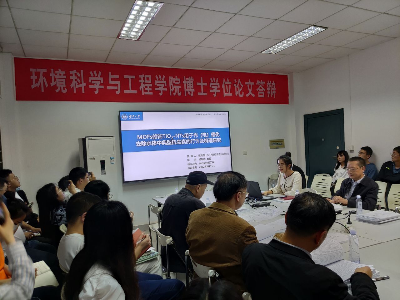 | 2019级博士生贾美莹(湖南大学环境科学与工程学院)于2022年5月13日晚在环境馆一楼会议室顺利通过了博士学位论文答辩。 答辩委员会主席: 牛承岗 教授/博导 (湖南大学环境科学与工程学院) 答辩委员会委员: 尹笃林 教授/博导 (湖南师范大学化学化工学院) 彭 兵 教授/博导 (中南大学冶金与环境学院) 张长 教授/博导 (湖南大学环境科学与工程学院) 王冬波 教授/博导 (湖南大学环境科学与工程学院) 杨麒 教授/博导 (湖南大学环境科学与工程学院) 龚继来 教授/博导 (湖南大学环境科学与工程学院) 答辩秘书: 李 欣 副教授/博导 (湖南大学环境科学与工程学院) 贾美莹博士生论文题目:MOFs修饰TiO2-NTs用于光(电)催化去除水体中典型抗生素的行为及机理研究 导师:杨朝晖 教授/博导 近年来,纳米技术的发展推动了纳米材料基吸附剂和光催化剂对于抗生素去除的探索。然而,催化剂的有效回收以及光生载流子的复合仍是亟待解决的问题。电化学辅助的光电催化是除光催化之外的另一种可实现抗生素矿化去除的有效策略。基于合成可调性和“类半导体特性”,金属有机框架(MOFs)可以通过构建光电极的形式丰富这一重要研究领域,且其衍生的金属氧化物可与半导体形成异质结有效有效促进载流子的传输。此外,MOFs及其衍生物修饰的光电极除了解决粉体回收难、载流子易复合的问题外,还可以在分子水平合理调节光电催化活性,增加电解质与电极的接触面积,从而促进电解质和反应底物在电极中的扩散。然而,现阶段MOFs修饰光电极用于光电催化降解水体环境中抗生素的报道十分有限,如何有效的将MOFs修饰于导电基底,并提高MOFs与导电基底的紧密性需要进一步的探索。因此,本文针对找寻合适的金属有机骨架材料,确定合适的修饰策略,构建具有良好光电催化活性和稳定性的新型光电极用于去除水体环境中的抗生素展开系列研究。 贾美莹博士生基础知识扎实,专业理论知识丰富,具有很好的创新和科研能力。近五年来以第一作者身份在Coordination Chemistry Reviews (SCI 2020 IF = 22.315), Applied Catalysis B: Environmental (SCI 2020 IF = 19.503)和Chemical Engineering Journal (SCI 2020 IF=13.273)刊物上共发表高水平SCI论文4篇,并以共同第一作者在Journal of Hazardous Materials (SCI 2020 IF = 10.588) 上发表论文1篇,申请国家专利3项(目前授权1项)。 攻读学位期间曾获湖南大学优秀博士研究生学校奖学金,湖南大学优秀研究生,湖南大学优秀研究生干部等荣誉奖励。 该学位论文选题具有很强的创新性和前瞻性,综述全面,工作量较大,研究结果具有较高的理论参考价值和实践指导意义;论文整体结构严谨,条理清晰,实验设计合理,分析较为全面透彻,引证规范完整;数据详实可靠,图表工整规范,结论正确,成果突出,是一篇优秀的博士学位论文。 在此,对贾美莹博士生通过博士学位论文答辩表示热烈祝贺! ![]() ![]() ![]() ![]() |