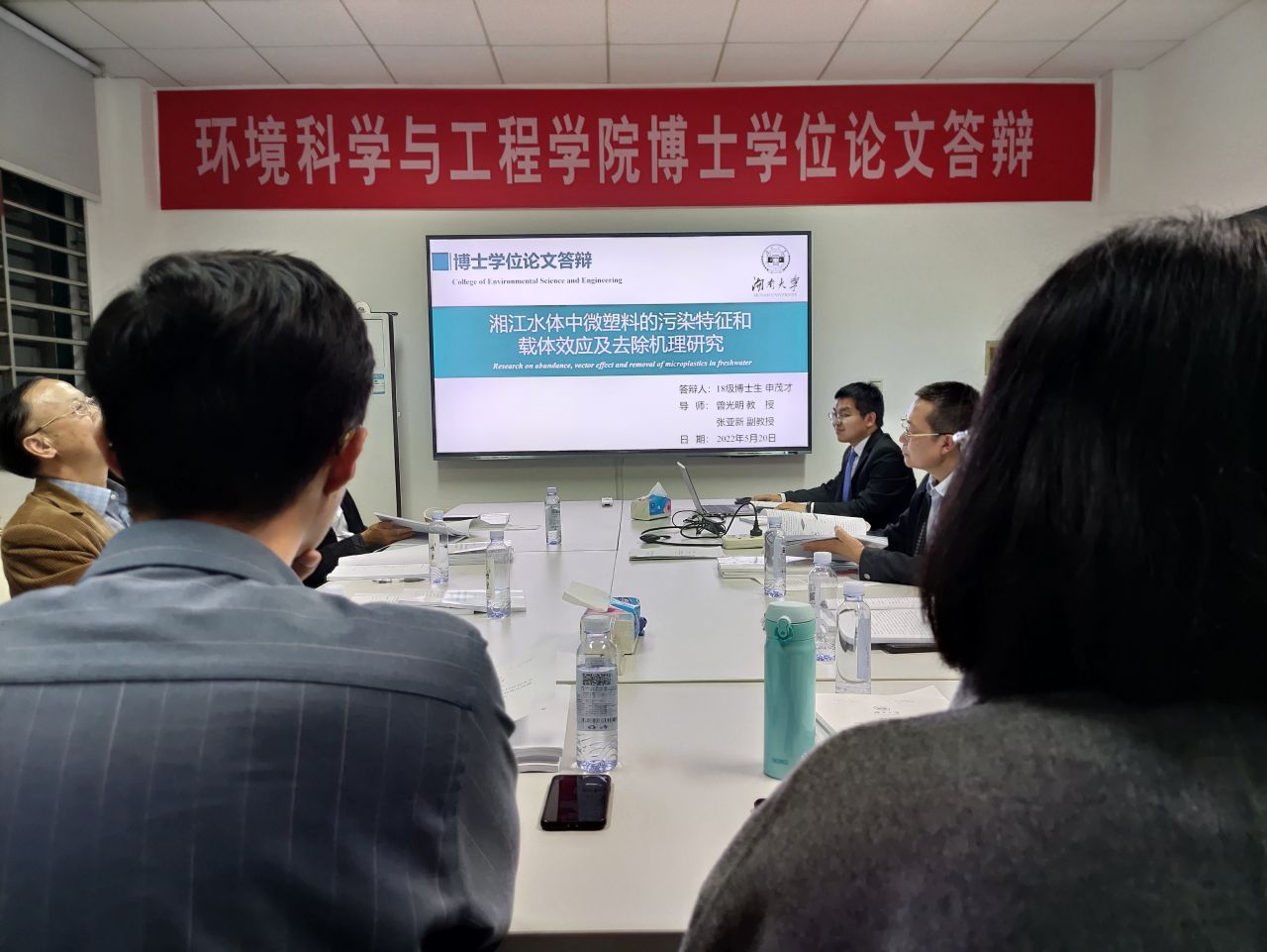 | 博士生申茂才(湖南大学环境科学与工程学院)于2022年5月20日晚在环境馆一楼会议室顺利通过了博士学位论文答辩。 答辩委员会主席: 牛承岗 教授/博导(湖南大学环境科学与工程学院) 答辩委员会委员: 尹笃林 教授/博导(湖南师范大学化学化工学院) 彭兵 教授/博导 (中南大学冶金与环境学院) 曾光明 教授/博导(湖南大学环境科学与工程学院) 汤琳 教授/博导(湖南大学环境科学与工程学院) 张长 教授/博导 (湖南大学环境科学与工程学院) 赖萃 副教授/博导 (湖南大学环境科学与工程学院) 张辰 副教授/博导(湖南大学环境科学与工程学院) 答辩秘书:李欣 副教授/博导(湖南大学环境科学与工程学院) 申茂才博士生论文题目:湘江水体中微塑料的污染特征和载体效应及去除机理研究 导师:曾光明 教授/博导 张亚新 副教授/硕导 塑料污染对生态环境和人类的健康发展都存在巨大的威胁,特别是在新冠病毒疫情(COVID-19)期间,大量一次性个人防护用品塑料带来的污染。环境中的塑料废物在环境外力下课逐渐分解成微塑料和纳塑料,因此消除其带来的环境风险是必要的。本文调查了湘江长沙段水源水和家庭自来水中微塑料的污染和分布特征,通过对微塑料的种类分析了其潜在来源;研究了微塑料作为铅离子的载体行为,并对其吸附过程、机制和影响因素进行了相应的讨论;探讨了微塑料对水处理消毒过程的干扰,为后续去除水中微塑料的必要性提供依据;以阳离子表面活性剂和普通沸石为基础,合成了能有效去除水中微塑料的改性沸石,并对其去除过程和机制进行了讨论;分析了电絮凝技术去除水中微塑料的可行性,分别讨论了不同因素对此过程的影响及实际和经济可行性。 申茂才博士生理论基础和专业知识扎实,具有一定的科研创新能力。在攻读博士学位期间以第一作者发表SCI论文15篇,其中在Chemical Engineering Journal (SCI 2021 IF= 13.273)发表SCI论文3篇,Journal of Cleaner Production (SCI 2021 IF=9.297)上发表SCI论文2篇,Science of the Total Environment (SCI 2021 IF= 7.963)发表SCI论文4篇,Environmental Pollution (SCI 2021 IF=8.071)上发表SCI论文2篇,Marine Pollution Bulletin (SCI 2021 IF=5.553)上发表SCI论文2篇,Chemosphere (SCI 2021 IF=7.086)上发表SCI论文1篇, Environmental Science and Pollution Research (SCI 2021 IF=4.443)上发表SCI论文1篇,并入选ESI高被引论文5篇。此外,还获得了2021年度上海同济高廷耀“青年博士生杰出人才奖学金”,2021年度博士生国家奖学金,及2021年湖南大学优秀研究生等荣誉。 该学位论文研究方案设计合理,创新性较强,逻辑性强,内容详实,数据可靠,结论正确,体现出作者具有较为扎实的专业理论基础和较强的科研工作能力,是一篇优秀的博士学位论文。 在此,对申茂才博士通过博士学位论文答辩表示热烈祝贺! ![]() ![]() ![]() ![]() |