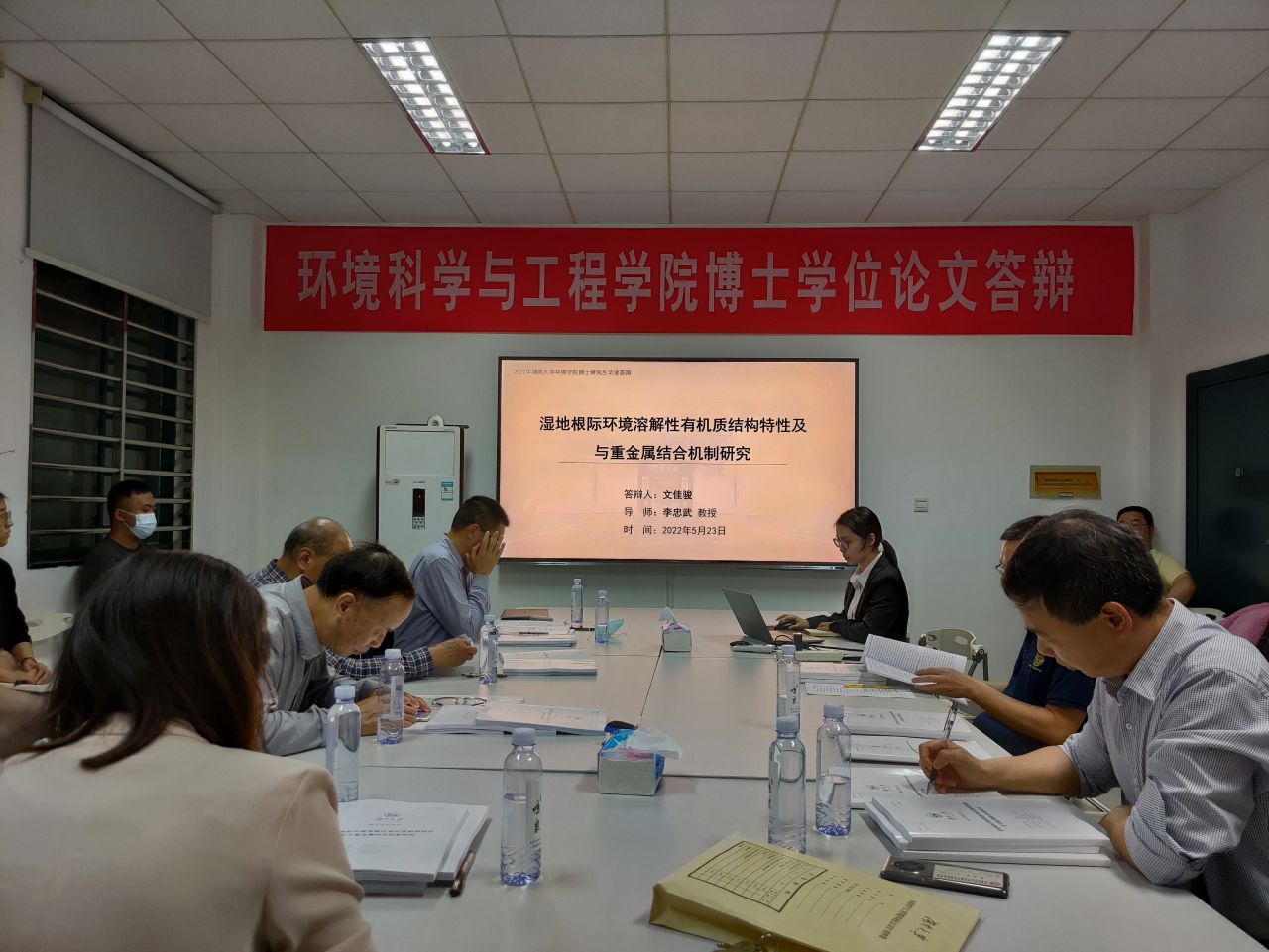 | 博士生文佳骏(湖南大学环境科学与工程学院)于2022年5月23日晚在环境馆一楼会议室顺利通过了博士学位论文答辩. 答辩委员会主席: 牛承岗 教授/博导 (湖南大学环境科学与工程学院) 答辩委员会委员: 尹笃林 教授/博导 (湖南师范大学化学化工学院) 彭兵 教授/博导 (中南大学冶金与环境学院) 李忠武 教授/博导 (湖南大学环境科学与工程学院) 袁兴中 教授/博导 (湖南大学环境科学与工程学院) 张长 教授/博导 (湖南大学环境科学与工程学院) 梁婕 教授/博导 (湖南大学环境科学与工程学院) 答辩秘书: 李欣 副教授/博导 (湖南大学环境科学与工程学院) 文佳骏博士生论文题目:湿地根际环境溶解性有机质结构特性及与重金属结合机制研究 导师: 李忠武 教授/博导 湿地是全球重要的淡水来源,随着工业、农业和其他人类活动的发展,湿地的重金属污染问题日益严重。本研究以湿地根际环境DOM为研究对象,采用野外采样与室内培养等方法,基于光谱学、质谱学等技术结合多种统计分析方法,分析不同湿地沉积物根际环境下DOM的特性及主要的影响因素;对比分析不同重金属离子浓度对根际DOM与重金属的结合特征的影响;阐明根际环境下DOM及其与不同重金属结合行为对水分变化的响应特征;揭示铁氧化物对湿地根际DOM与重金属结合行为的影响。研究结果为深入了解重金属与根际环境DOM的相互作用机制提供理论基础,同时也为湿地重金属的修复实践提供前期基础。 文佳骏博士生基础知识扎实,专业理论知识丰富,具有较好的科研创新能力。硕博连读期间以第一作者身份在Journal of Hazardous Materials (SCI 2020 IF= 10.588)、Ecotoxicology and Environmental Safety (SCI 2020 IF= 6.291)等刊物上共发表高水平SCI论文4篇。 该学位论文选题合理,综述完整,工作量大,创新性强,内容详实,数据可靠,写作规范,成果较为突出,是一篇优秀的博士学位论文。 在此,对文佳骏博士生通过博士学位论文答辩表示热烈祝贺!