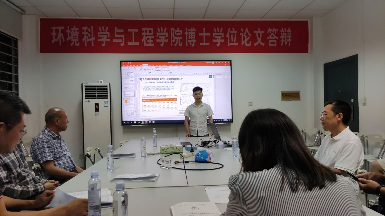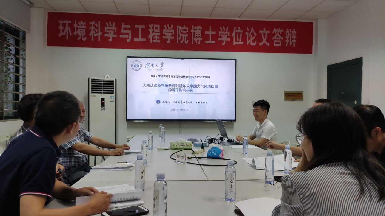 | 博士生陈绪武(湖南大学环境科学与工程学院)于2022年6月28日晚在环境馆一楼会议室顺利通过了博士学位论文答辩. 答辩委员会主席: 牛承岗 教授/博导 (湖南大学环境科学与工程学院) 答辩委员会委员: 尹笃林 教授/博导 (湖南师范大学化学化工学院) 彭兵 教授/博导 (中南大学冶金与环境学院) 张长 教授/博导 (湖南大学环境科学与工程学院) 梁婕 教授/博导 (湖南大学环境科学与工程学院) 答辩秘书:李欣 副教授/博导 (湖南大学环境科学与工程学院) 陈绪武博士生论文题目:人为活动及气象条件对近年来中国大气环境质量的若干影响研究 导师: 李晓东 教授/博导 中国作为世界上最大的发展中国家,近几十年来由于城市化和工业化迅速发展导致空气污染加剧。以高浓度细颗粒物(PM2.5,空气动力直径小于2.5 μm的颗粒物)为特征的灰霾现象和以地表臭氧为特征的光化学烟雾是城市中两种主要的大气污染事件。本研究利用全国尺度地表空气质量监测数据、气象条件数据、土地利用数据、人口密度数据、卫星遥感数据以及污染源排放数据等环境大数据,并结合机器学习算法、区域空气质量模型,探讨我国气溶胶消光系数冬季年变化趋势,分析我国中部区域冬季PM2.5浓度下降缓慢的原因,以及研究植被绿化对我国夏季地表臭氧浓度的影响。本研究的开展对降低我国冬季霾污染以及夏季臭氧污染具有一定的指导意义,并为科学制定大气污染防治策略提供参考。 陈绪武博士生在李晓东教授的指导下开启了环境学院在宏观尺度上的大气污染理论研究,实属不易,博士期间在Atmospheric Environment (SCI 2020 IF = 4.798)、Journal of Cleaner Production (SCI 2020 IF = 9.297)、Environment International (SCI 2020 IF = 9.621) 等刊物上发表高水平论文4篇。所做研究论文面向国家环保战略需求,专业理论知识丰富,具有较强的科研创新能力,论文结构好,层次分明,逻辑性较强,行文规范,成果突出,是一篇优秀的博士学位论文。 在此,对陈绪武博士生通过博士学位论文答辩表示热烈祝贺!